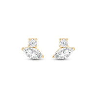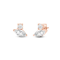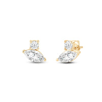 Embodying quiet luxury, these two-stone studs will effortlessly work well with any wardrobe. Each earring carries a round and marquise diamond sparkling beautifully together. This pair is the perfect choice for women who prefer a simplistic yet elegant approach to accessorizing.