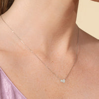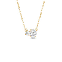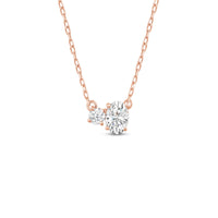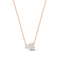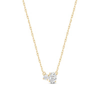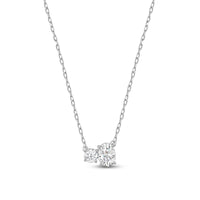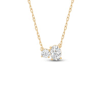 Minimal in design yet incredibly elegant in character, this two-stone diamond necklace could not be a more perfect fit for the woman who embodies quiet luxury. The necklace features a thin chain holding a sparkly pendant composed of a round and oval-cut diamond set close together. This chic piece pairs well with everything.