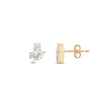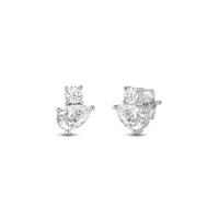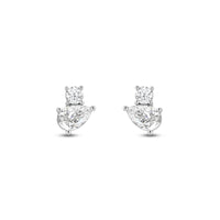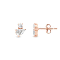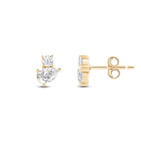 Why settle for one when you can have two? These two-stone studs feature a round and pear-cut diamond sparkling in perfect harmony. Trendy in style yet timeless in appeal, these earrings will pair seamlessly with any ensemble.