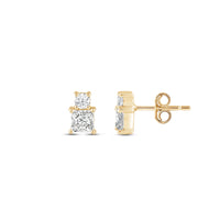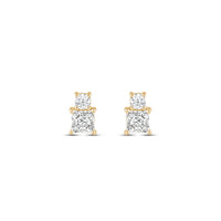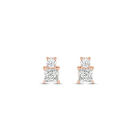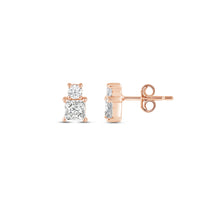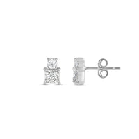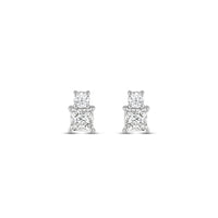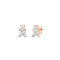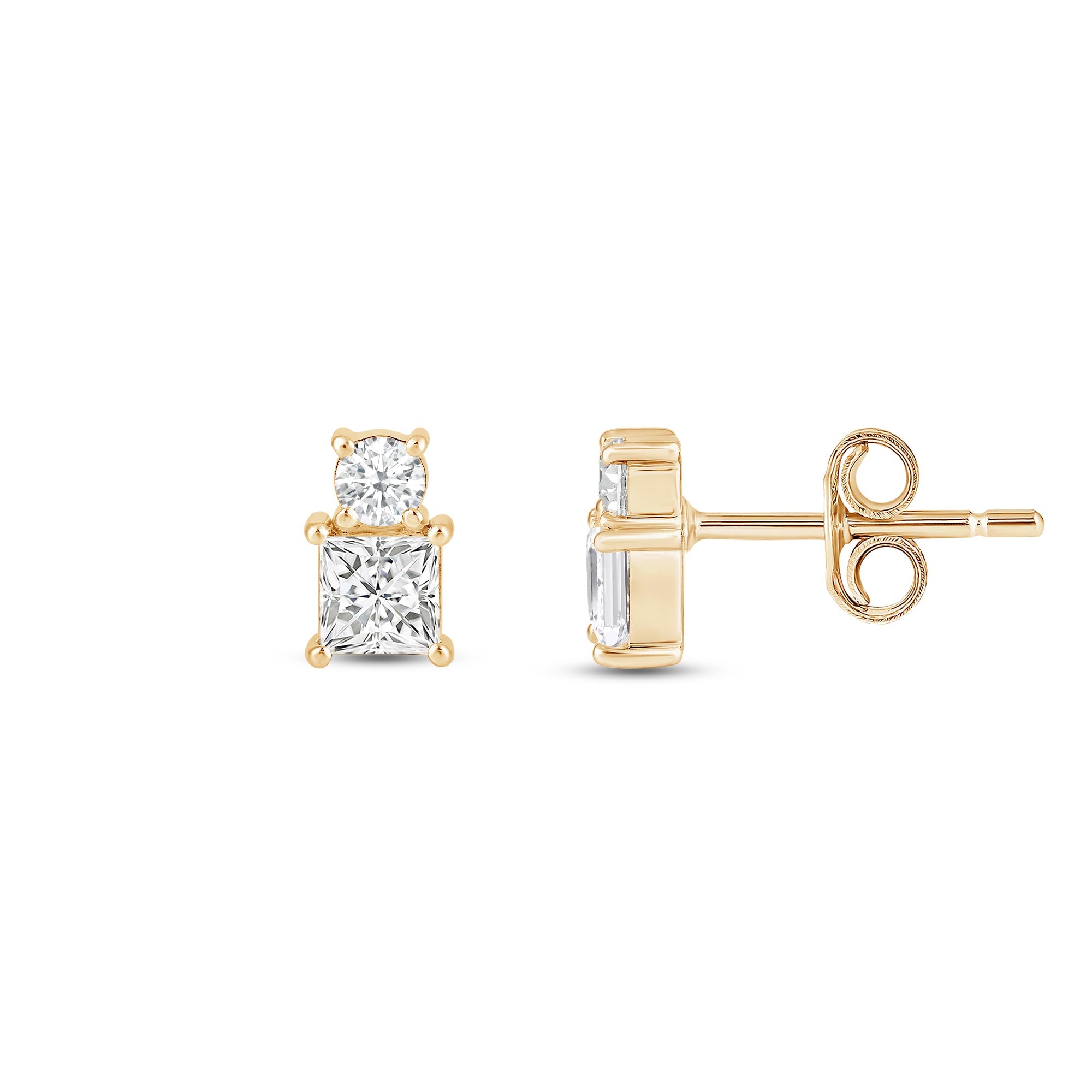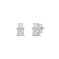 Looking for earrings with minimal style yet maximum impact? These earrings are less than half an inch in size but can give you twice the sparkle. The two-stone prong setting bears a round diamond and a princess-cut diamond - two diamond cuts with the most stunning sparkle.