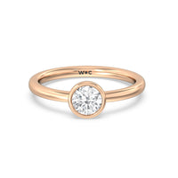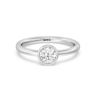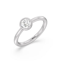 Designed with an eternal style, this stackable diamond ring will bring sparkle to your looks in countless ways. The smooth, satin-finished band bears a single diamond on a bezel setting. It's perfect whether worn alone or layered with many other minimalist rings.