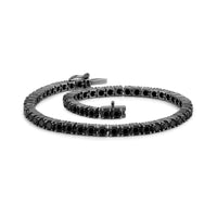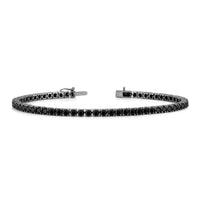 This white gold with black rhodium bracelet gives the classic tennis bracelet a refined appeal. Majestically masculine, this bracelet comes traced by a series of black diamonds on a four prong setting, adding an edge to your sharpest look.
