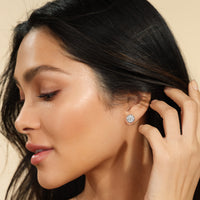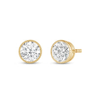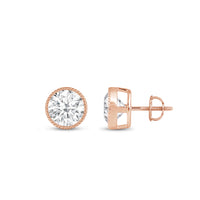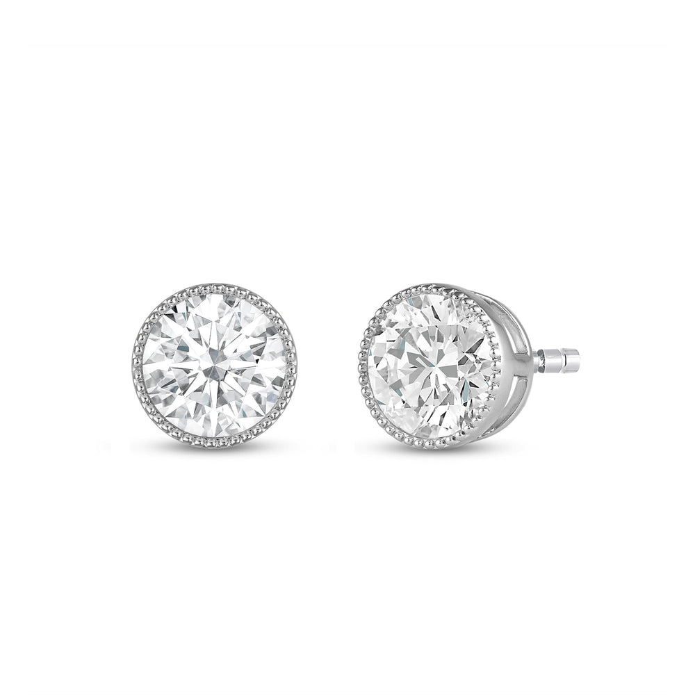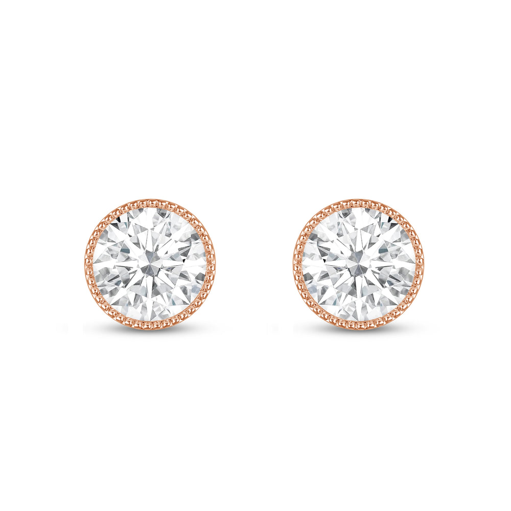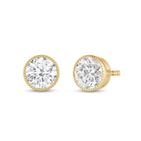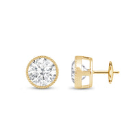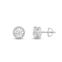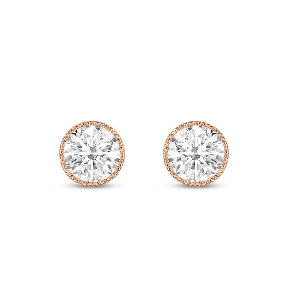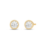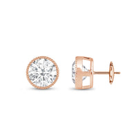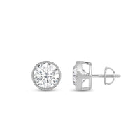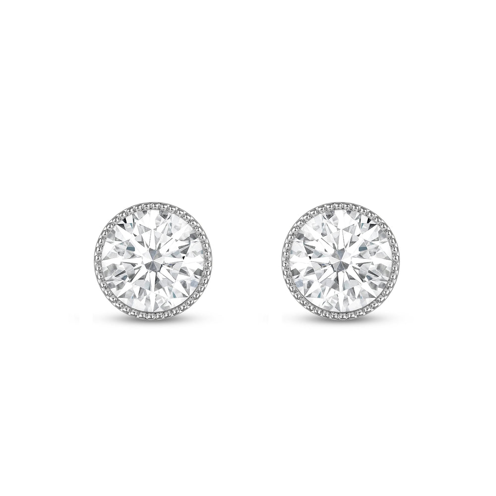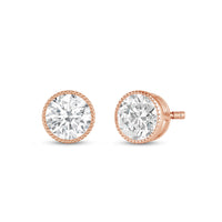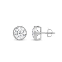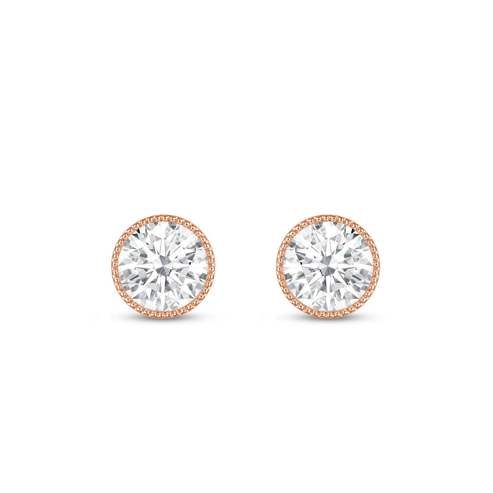 A round shaped milgrain halo perfectly surrounds a round stone for a vintage inspired look. This is a perfect pair of earrings for everyday with a unique vintage flair. These earrings are secured with a push backing.