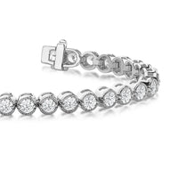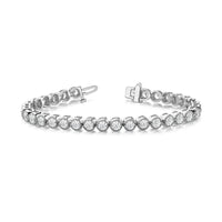 Here is a classic line bracelet imbued with vintage elegance. This tennis bracelet features a row of round diamonds set on shiny, round baskets with a milgrain edge. The decorative beaded edge that frames the diamond adds a refined and character-rich appeal to this bracelet.