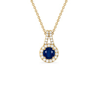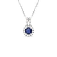 The refined elegance of this gemstone pendant allows you to elevate the look of any outfit in an instant. The pendant features a round Sapphire on its center framed by a classic halo of lab-grown diamonds. A diamond-studded split bale holds the halo-wrapped colored gem.