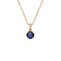 This pendant has a wear-forever style. It holds one round Sapphire on a polished bail. Underneath the colored gem is a hidden halo of lab-grown diamonds. Extremely minimal yet elegant, this pendant has what it takes to be your daily go-to accessory.