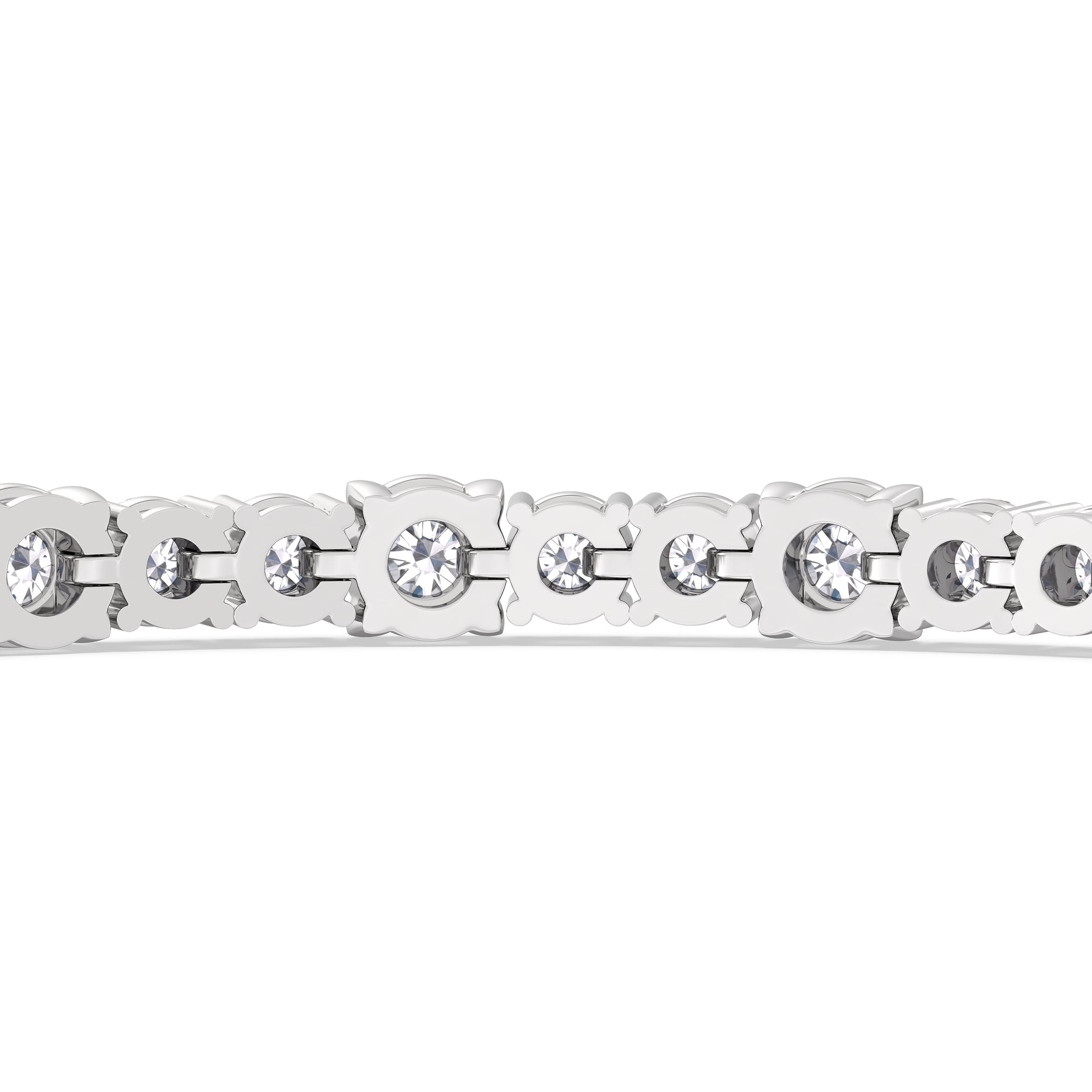 The diamond tennis bracelet that can be paired with anything, at any time. It features a generous quantity of round diamonds, wholeheartedly embracing the power of minimalism. Some of the stones are slightly larger in size for a subtle contrast.