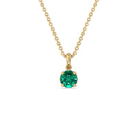 This pendant has a wear-forever style. It holds one Round Shape Created Emerald on a polished bail. Underneath the colored gem is a hidden halo of lab-grown diamonds. Extremely minimal yet elegant, this pendant has what it takes to be your daily go-to accessory.