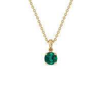 This pendant has a wear-forever style. It holds one Round Shape Emerald on a polished bail. Underneath the colored gem is a hidden halo of lab-grown diamonds. Extremely minimal yet elegant, this pendant has what it takes to be your daily go-to accessory.
