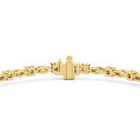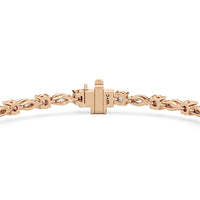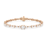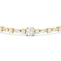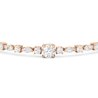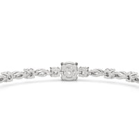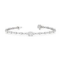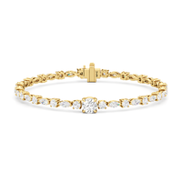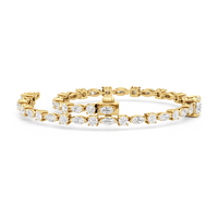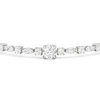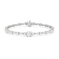 A refined piece of jewelry that highlights the allure of simplicity. This diamond tennis bracelet features a row of round and marquise diamonds on an alternating pattern. A round diamond marks the center of the line, lending an extra dazzling effect.