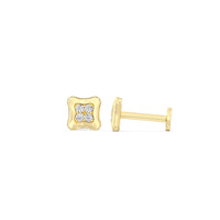 Tiny in size, but mighty in style. The beauty of these shimmering curvy-square studs is enhanced by flatback posts that won't poke or irritate ears. Wear them around the clock and all around your ear - first or second lobe, lower or upper helix.