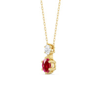 Take your styling game up a notch with this ruby and diamond necklace that is ready to inject luxe into any outfit. This necklace features two round diamonds mounted on a six-prong setting. With a versatile design, this sparkler is definitely something you can wear forever.