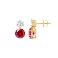 A wardrobe staple, these diamond earrings and their classic beauty will serve you well for years to come. Each earring features a pair of big ruby and small round diamond, each set on a six-pong basket. With these earrings' refined sophistication, you can easily pair them with all kinds of outfits for all kinds of occasions.