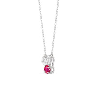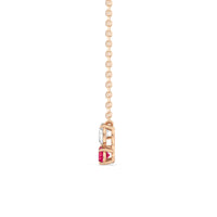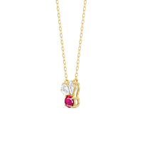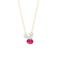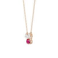 This ruby and diamond necklace is a gorgeous option for day or night wear. It carries two pear-cut diamonds of different sizes and ruby. All three diamonds are positioned in a slanted manner, clustered to form a single pendant that radiates a beautiful and brilliant shine.
