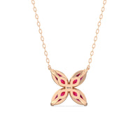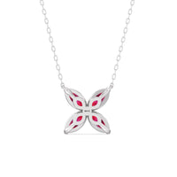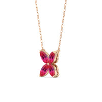 The Wildflower Necklace captures a blend of mystery, simplicity, and sophistication. It presents four ruby marquise chosen for their radiance and superlative quality, forming the shape of a delicate bluet. The elongated silhouette of each ruby marquise gracefully reflects and refracts light, creating a bold brilliance.