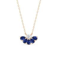 The Daisy Petals Necklace is inspired by the phrase "counting daisies," crafted to bring a touch of charm to your look. The lush necklace holds a radiant pendant composed of a cluster of diamonds. A single oval diamond, set east-west, is decorated below with five pear-cut sapphire that form a fan-shaped silhouette mimicking petals, while the top half represents petals that have already been picked. Its soft beauty and subtle sparkle make this necklace effortlessly elegant.