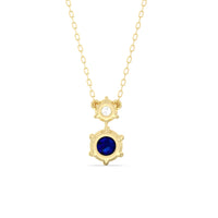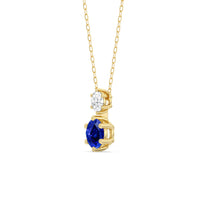 Take your styling game up a notch with this sapphire and diamond necklace that is ready to inject luxe into any outfit. This necklace features two round diamonds mounted on a six-prong setting. With a versatile design, this sparkler is definitely something you can wear forever.