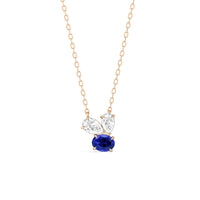 This sapphire and diamond necklace is a gorgeous option for day or night wear. It carries two pear-cut diamonds of different sizes and sapphire. All three diamonds are positioned in a slanted manner, clustered to form a single pendant that radiates a beautiful and brilliant shine.