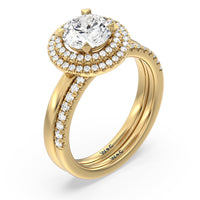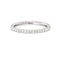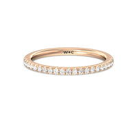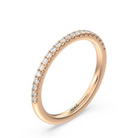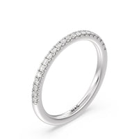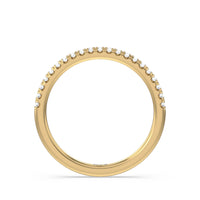 Shimmering pave diamonds cascade down this band to create a timeless beauty that will never go out of style. Designed to be paired with our saturn double halo solitaire engagement ring for a simple and sophisticated look.