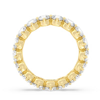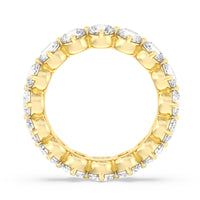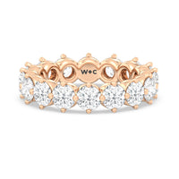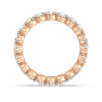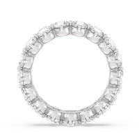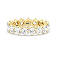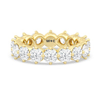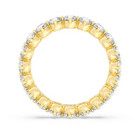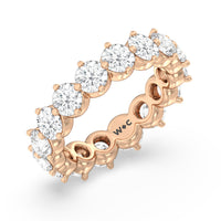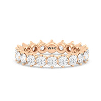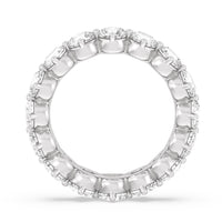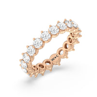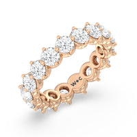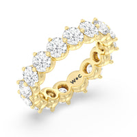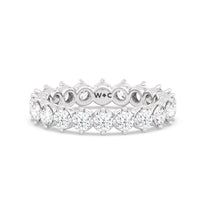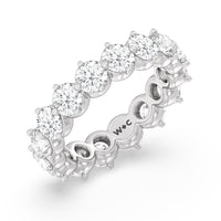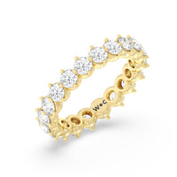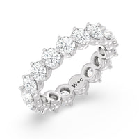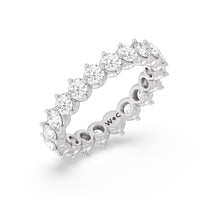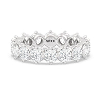 An absolute stunner. This eternity band ensures you will never run out of sparkle. It features a continuous row of round diamonds, with each diamond secured by claws that point to the north, east, south, and west. The compass setting gives depth to the ring and maximizes the gems' brilliance and fire.