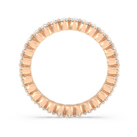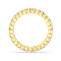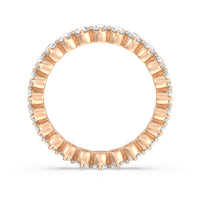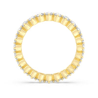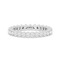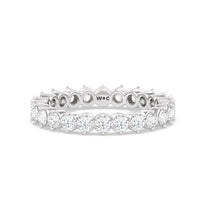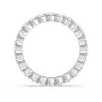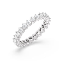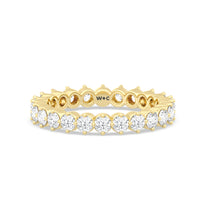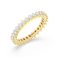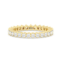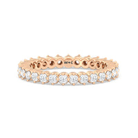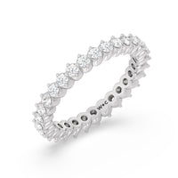 An absolute stunner. This eternity band ensures you will never run out of sparkle. It features a continuous row of round diamonds, with each diamond secured by claws that point to the north, east, south, and west. The compass setting gives depth to the ring and maximizes the gems' brilliance and fire.