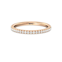 Shimmering pave diamonds cascade down this band to create a timeless beauty that will never go out of style. Designed to be paired with our seamless diamond shank halo solitaire engagement ring for a simple and sophisticated look.