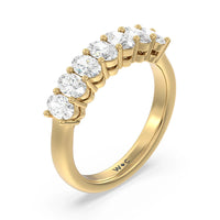 This stunning anniversary band features 7 spectacular oval diamonds securely prong set in gold.