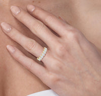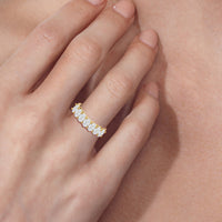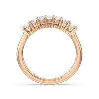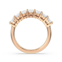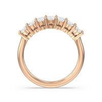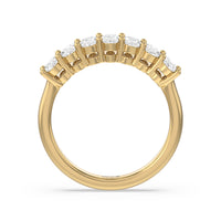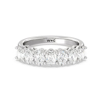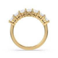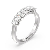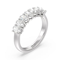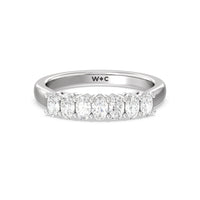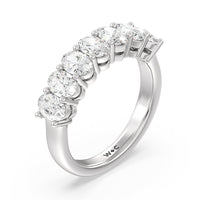 This stunning anniversary band features 7 spectacular oval diamonds securely prong set in gold.