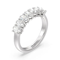 This stunning anniversary band features 7 spectacular oval diamonds securely prong set in gold.