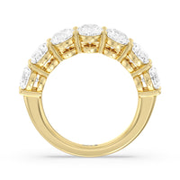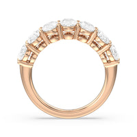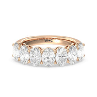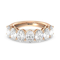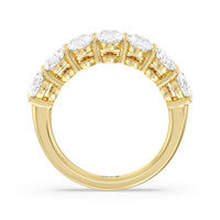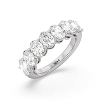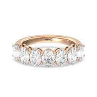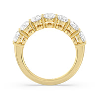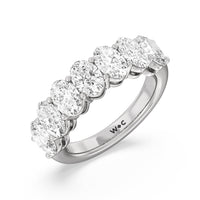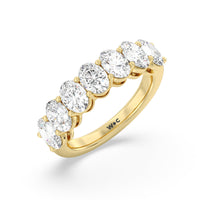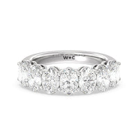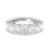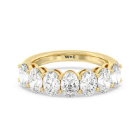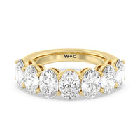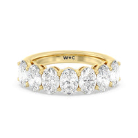 A radiant anniversary ring to mark and honor the love and special bond you share with your partner. This sparkler features seven oval-cut diamonds gracefully set on shared prong baskets. The simplicity of the setting works in harmony with the imposing brilliance of the diamonds, reflecting the delicate balance that kept your relationship going.