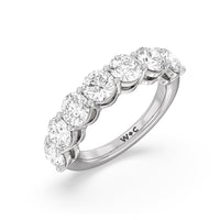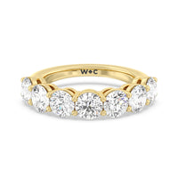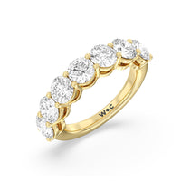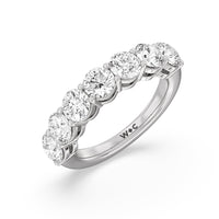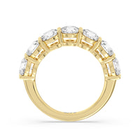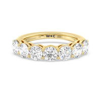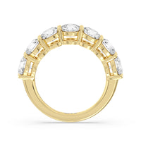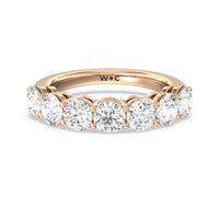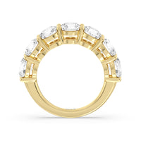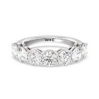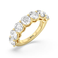 Seven round diamonds define the brilliant shine of this anniversary ring. The band is adorned with the flawless brilliance of seven round diamonds mounted on shared prongs. This ring is undeniably the perfect choice to mark seven years of togetherness or to express your unwavering love and commitment to your partner.