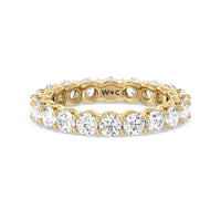 An elegant, timeless design showcasing your everlasting love. The minimal u-prong setting is designed to draw in the light so each diamond shines bright and create a wave shaped side profile set in gold.