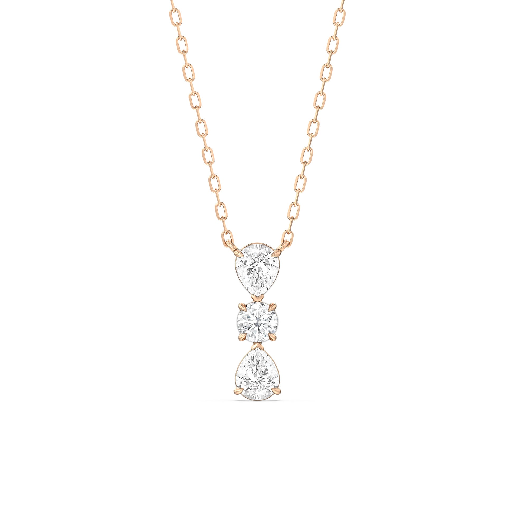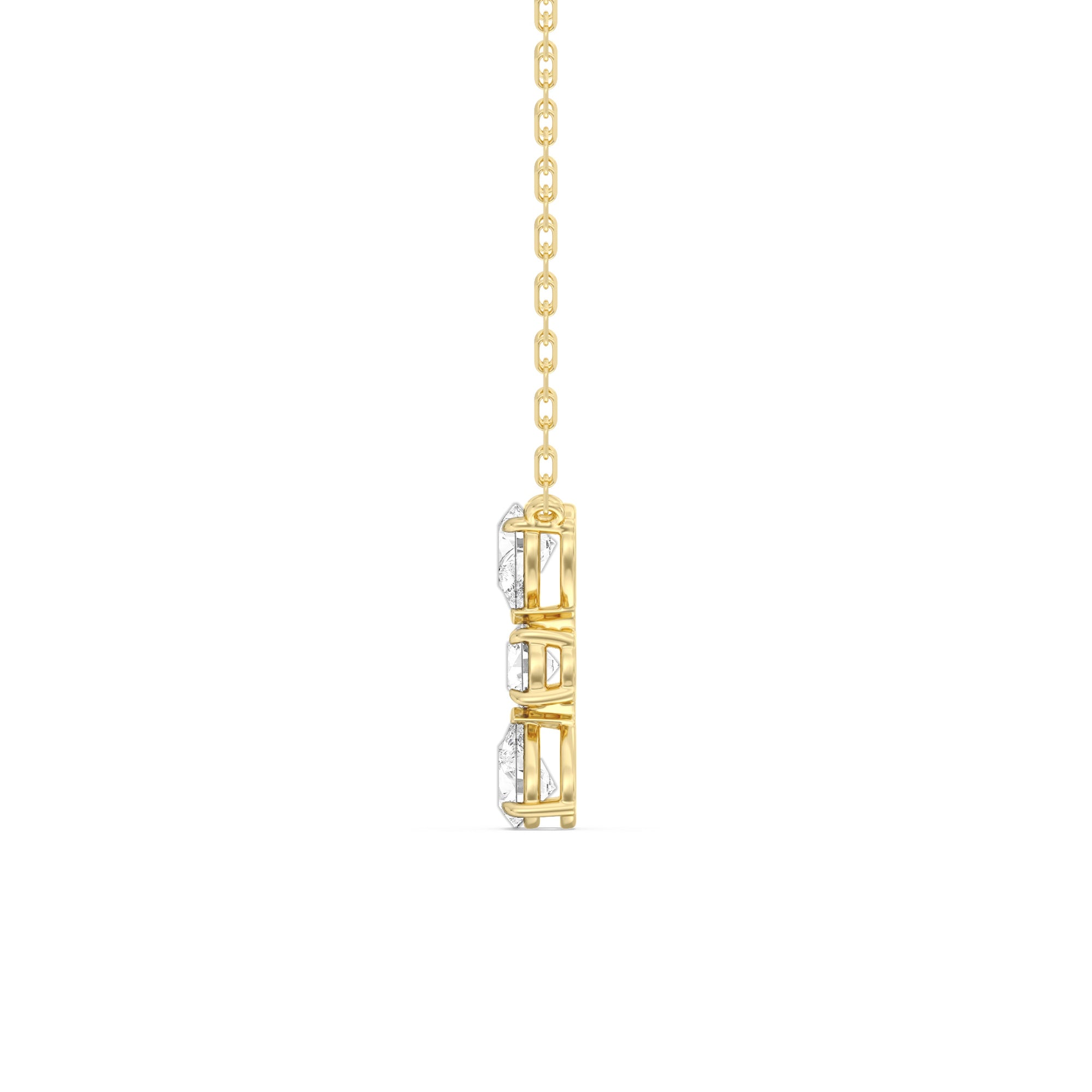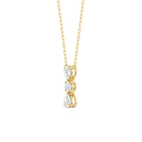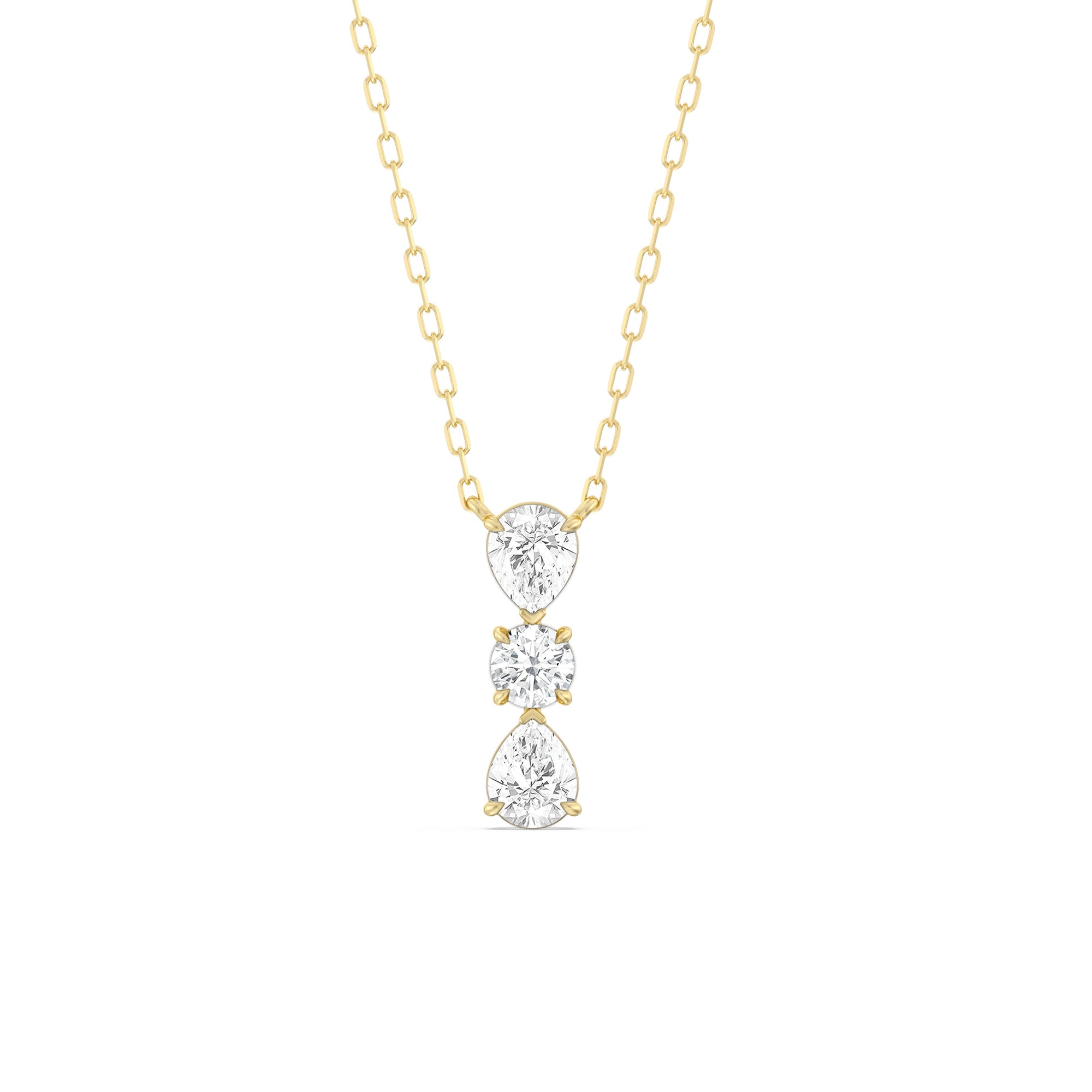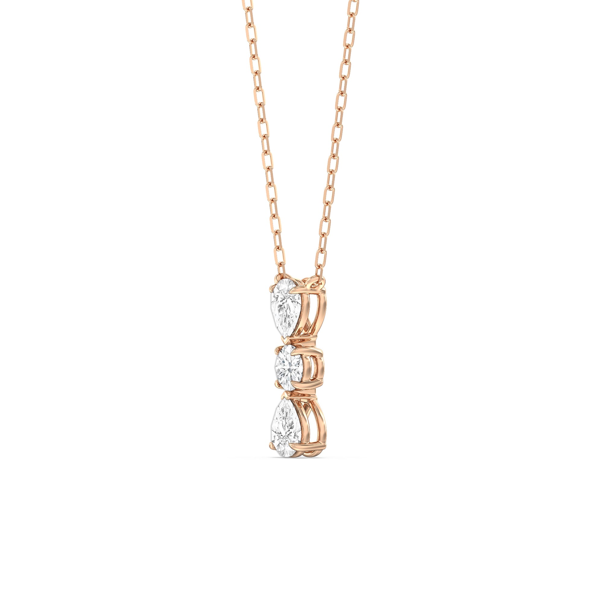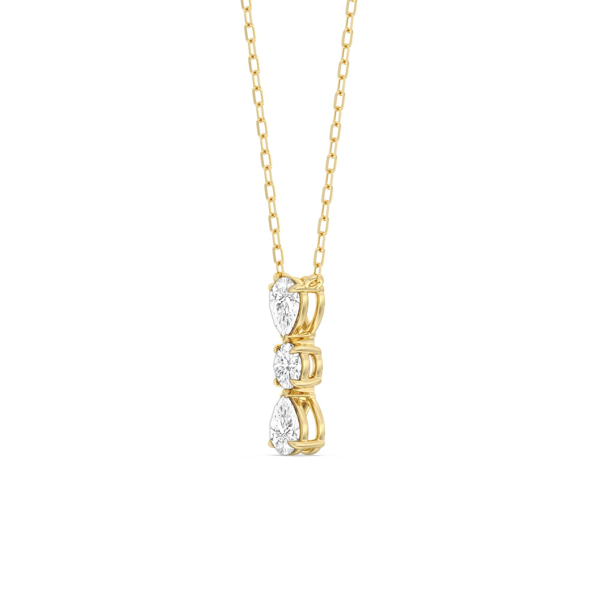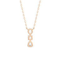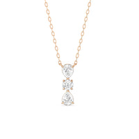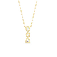 Let everyone know of your refined style through this diamond necklace. It carries three diamonds mounted in a vertical layout, with a 0.2 ct round diamond set in between two 0.25 ct pear diamonds. Its less-is-more design goes beyond fleeting trends, making this necklace a timeless sparkler that will endure for a long time.