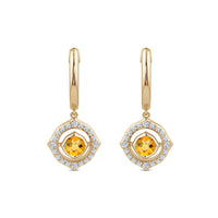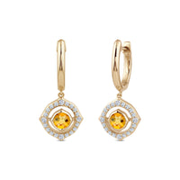 These pretty huggie earrings feature our signature charm motif with a row of pave lab-created diamonds as its outline and a vibrant citrine at its center.
