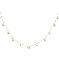 This beautiful station charm necklace is adorned with lab-created diamond signature droplets. Perfect for layering or wearing on its own, this droplet design provides instant effortless style. Crafted in 14k gold with 1 3/8Cts total diamond weight.
