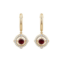 These pretty huggie earrings feature our signature charm motif with a row of pave lab-created diamonds as its outline and a rich garnet at its center.