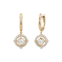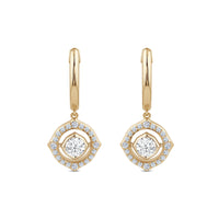 These pretty huggie earrings feature our signature charm motif with a row of pave lab-created diamonds as its outline and a shimmering lab grown diamond at its center.