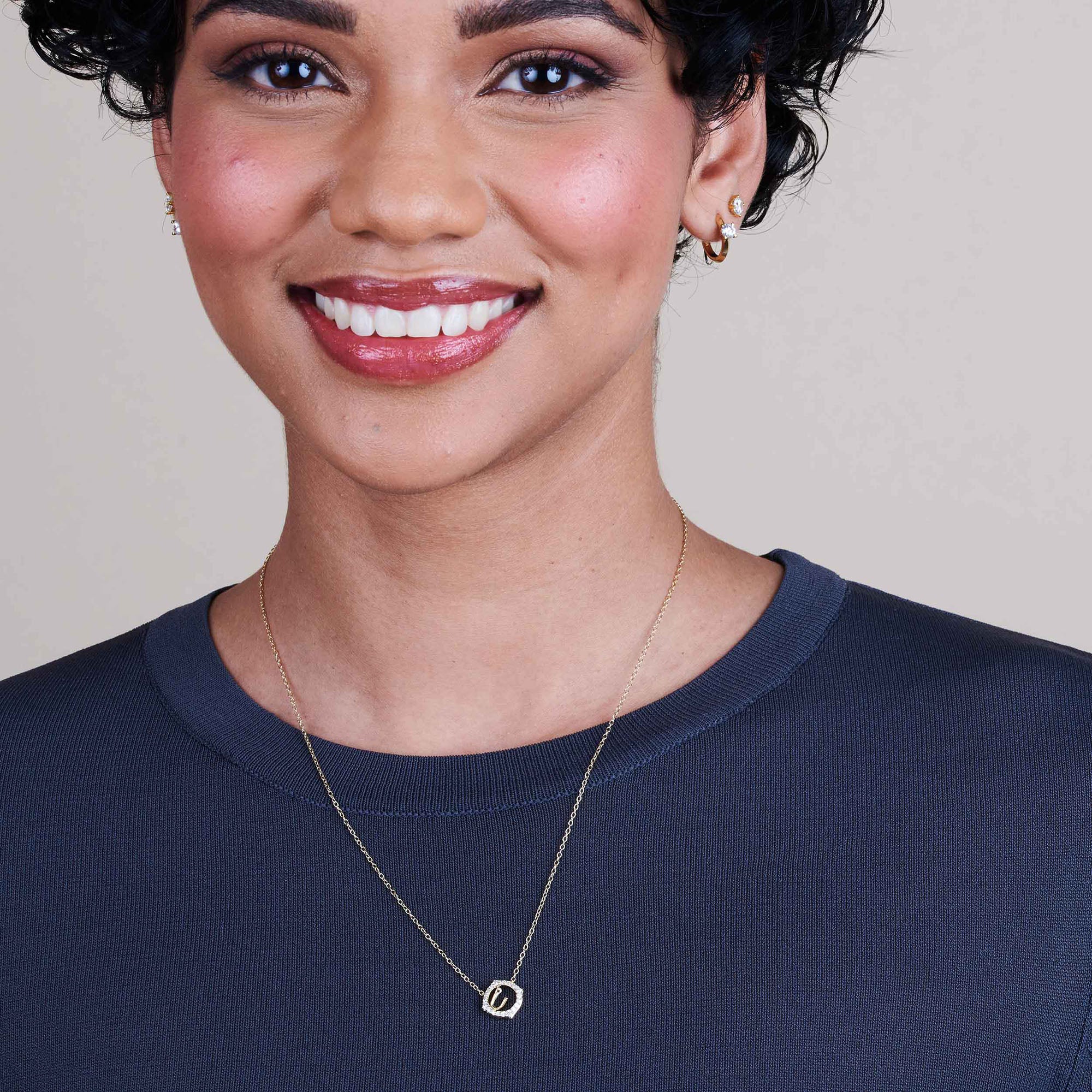 Whether you're looking for the ultimate thoughtful gift or pure self-indulgence get personal with this letter necklace. Wear to celebrate your own name or that of a loved one. Stunning styled alone or layered with other necklaces. This unique style featured an outline of lab-created pave diamonds.
