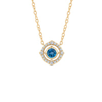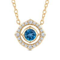 This pretty necklace features a row of pave lab-created diamonds as its outline with a captivating London blue topaz at its center. Featuring December's birthstone, London blue topaz, this stone is believed to increase inner strength, cultivate the intellect and enhance creativity. Crafted in 14k yellow gold with 1/6Cts total diamond weight.