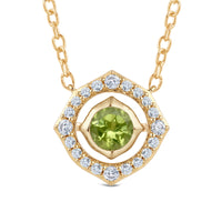 This pretty necklace features a row of pave lab-created diamonds as its outline with an alluring peridot at its center. Featuring Augusts birthstone, the peridot, also known as the evening emerald, this stone is believed to bring strength and when set in gold, prevents nightmares. Crafted in 14k yellow gold with 1/6Cts total diamond weight.