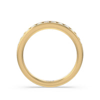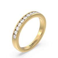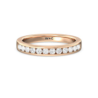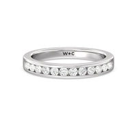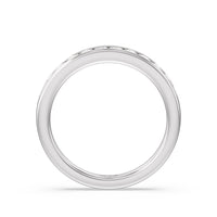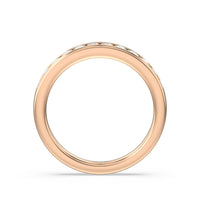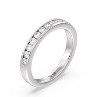 Shimmering pave diamonds cascade down this band to create a timeless beauty that will never go out of style. Designed to be paired with our six prong channel set solitaire ring for a simple and sophisticated look.