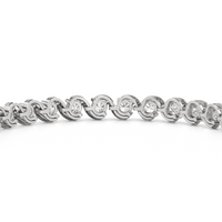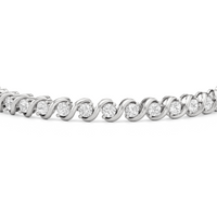 Elevate your daily ensemble with this S-shaped tennis bracelet. This diamond bracelet's design adds a unique touch to your jewelry collection. The coiled structure is intertwined with diamonds, making for a graceful addition to your wrist that can be worn either stacked or as a standlone statement.