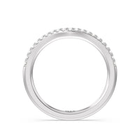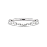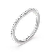 This curved diamond set wedding band is perfectly contoured to complement our split shank halo engagement ring for a simple and sophisticated look.