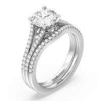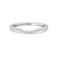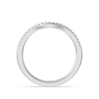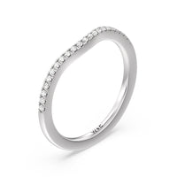 This curved diamond set wedding band is perfectly contoured to complement our split shank hidden accent engagement ring for a simple and sophisticated look.