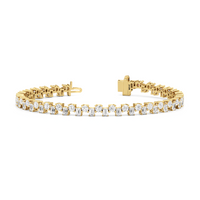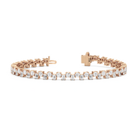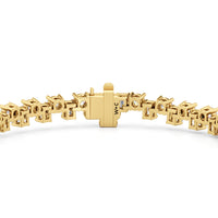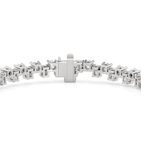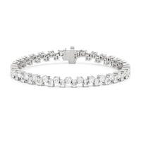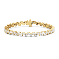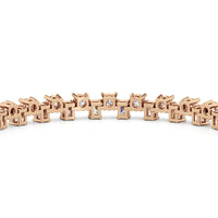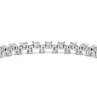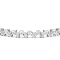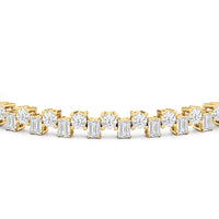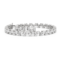 Fine jewelry with a bit of an attitude and bold flair. The classic tennis bracelet's silhouette gets an update with this piece's up-down gemstone arrangement. One row features emerald cut diamonds, while the other has round diamonds.