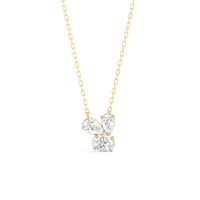 This diamond necklace is a gorgeous option for day or night wear. It carries two pear-cut diamonds of different sizes and a 0.4 ct oval diamond. All three diamonds are positioned in a slanted manner, clustered to form a single pendant that radiates a beautiful and brilliant shine.