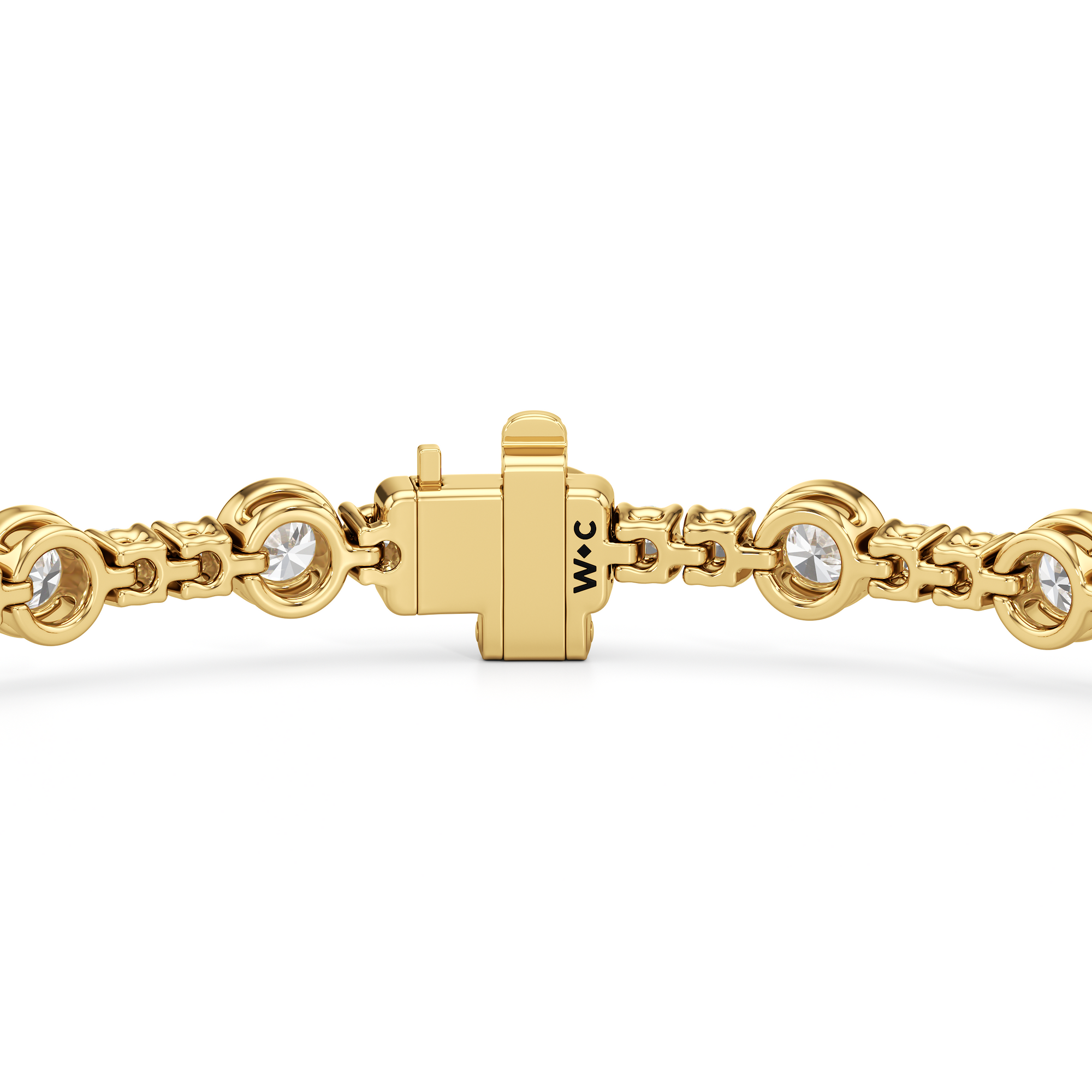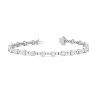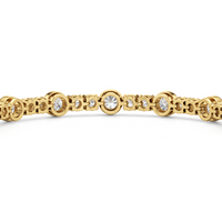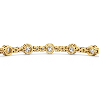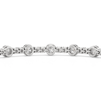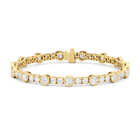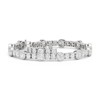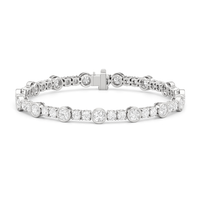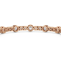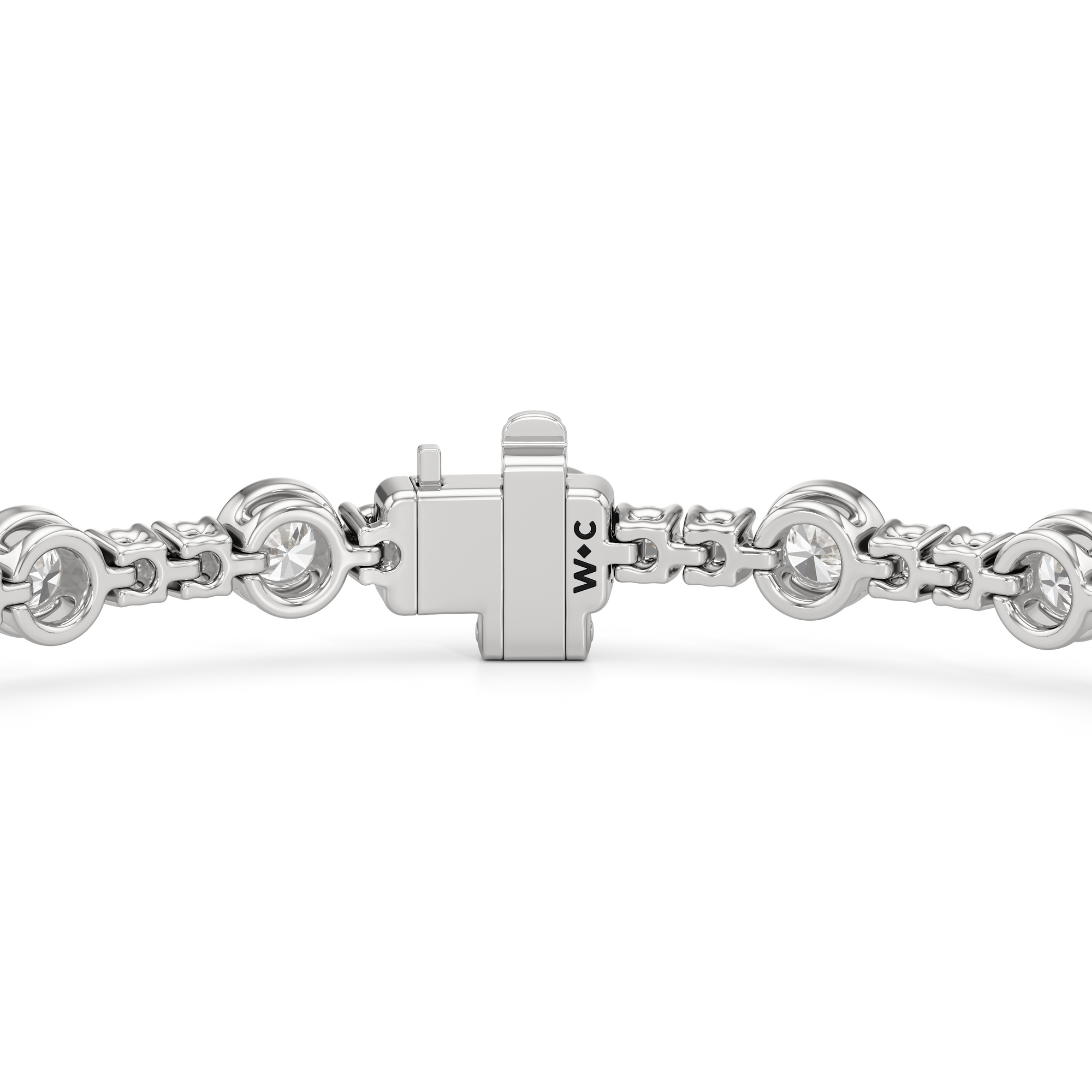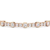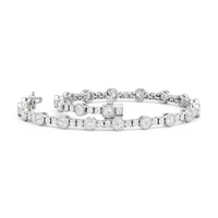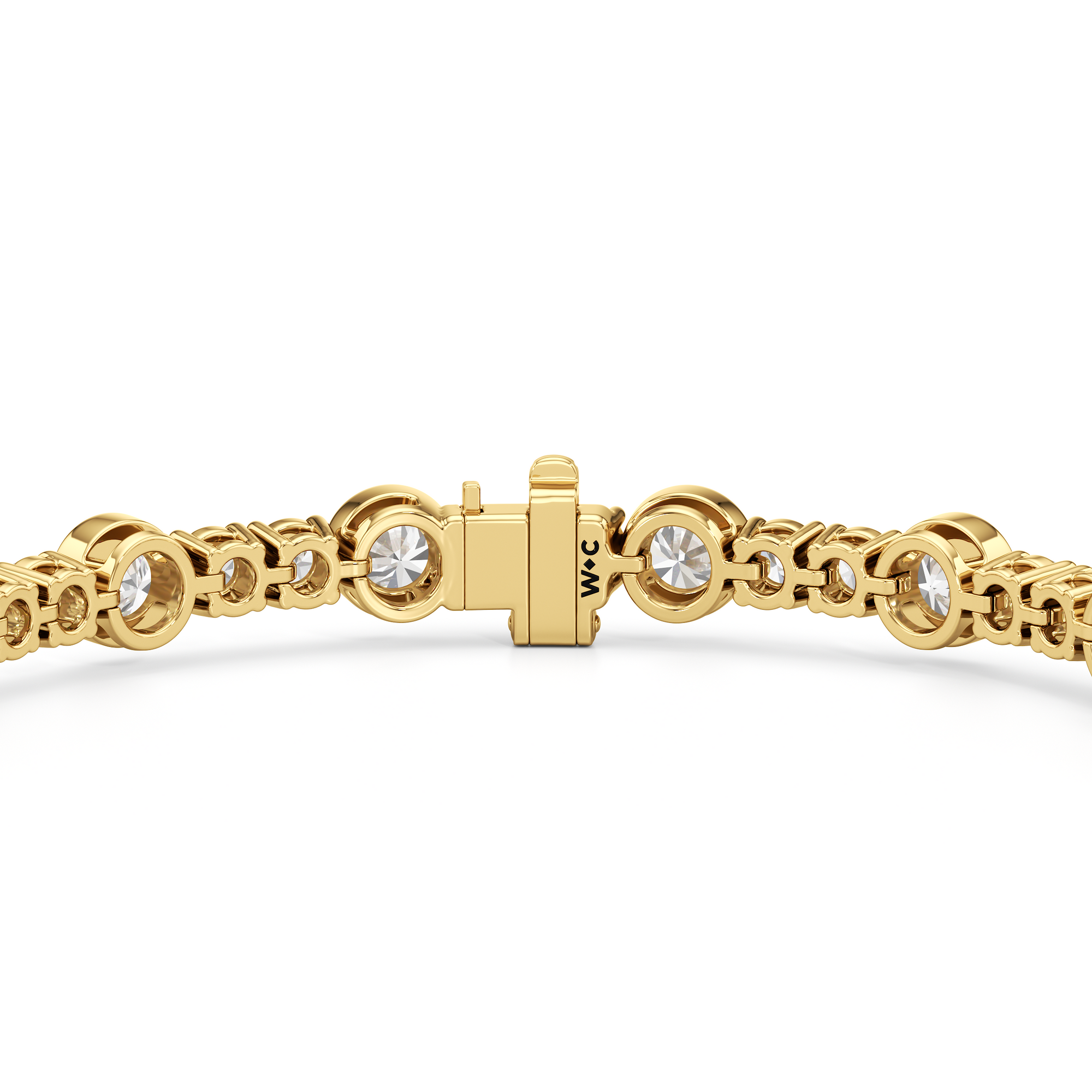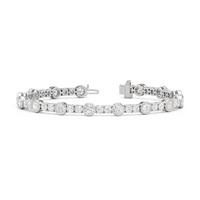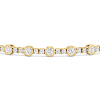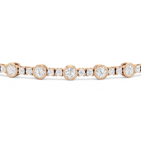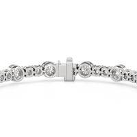 A testament to our vision of harmonizing luxury and simplicity. This tennis bracelet features a continuous line of round diamonds laid out in a pattern of one alternating bezel-set round diamond and a duo of claw prong-set round diamonds. The bracelet's understated design showcases the unparalleled fire and brilliance of the most popular diamond shape.