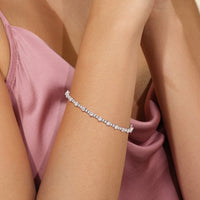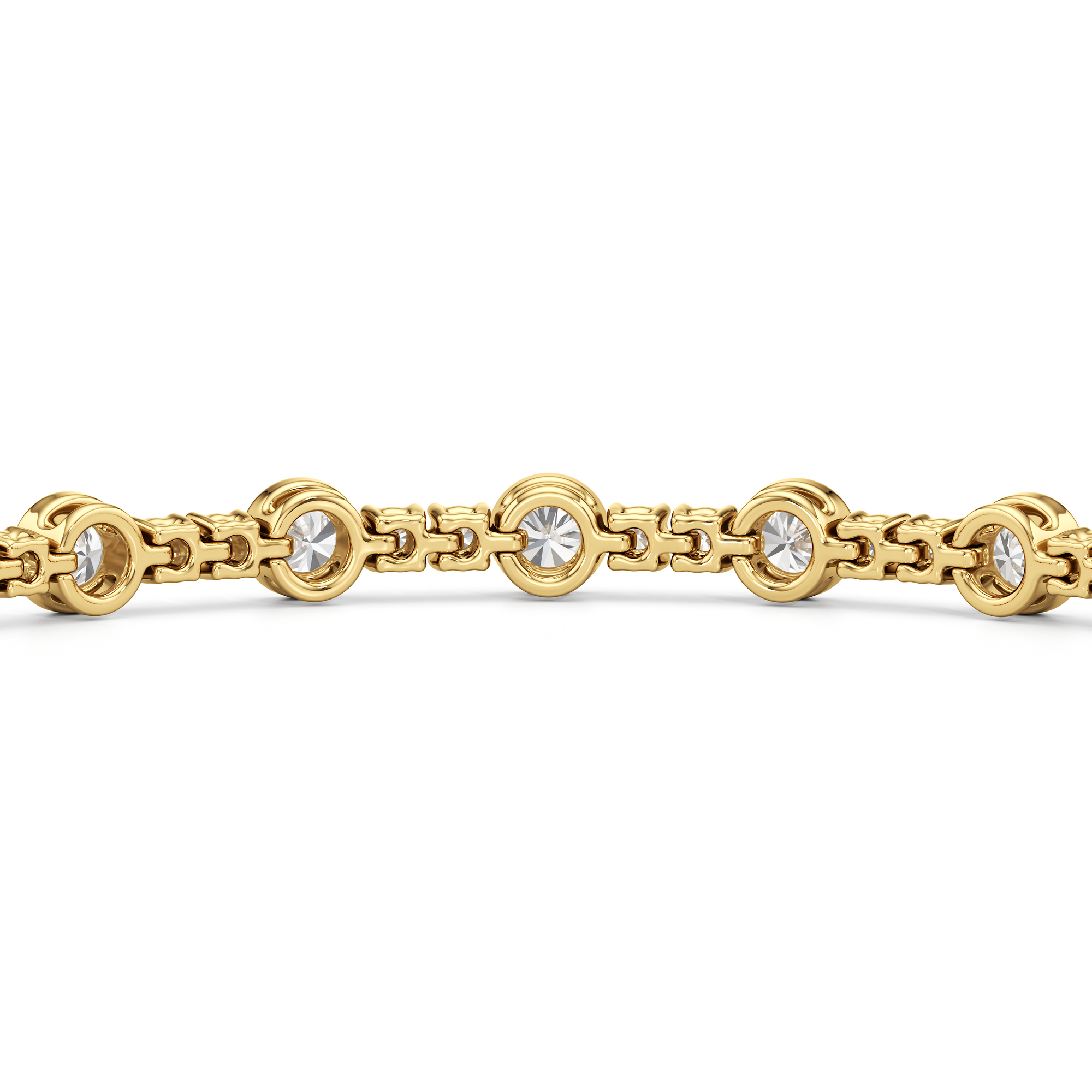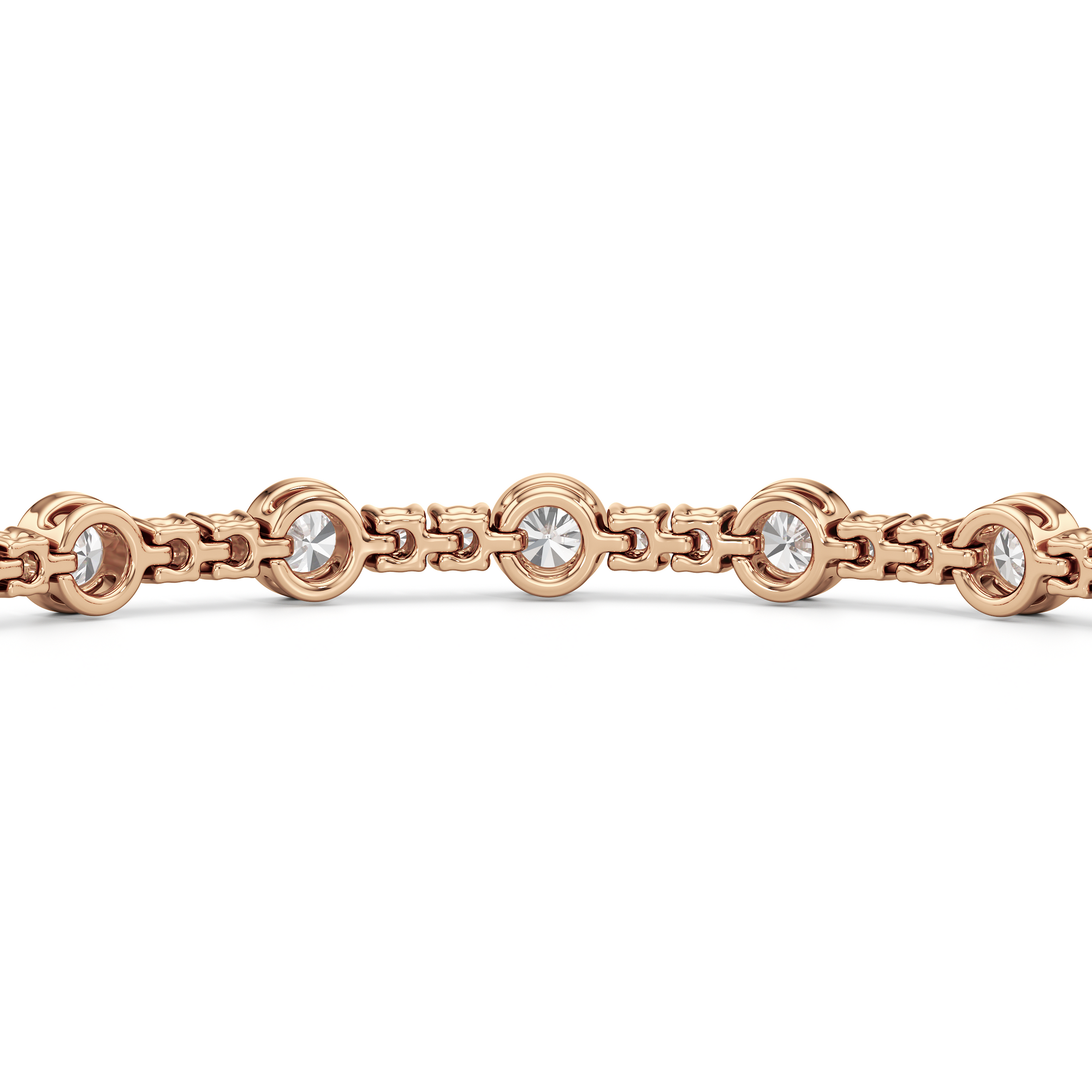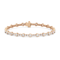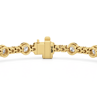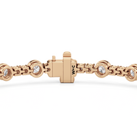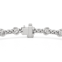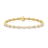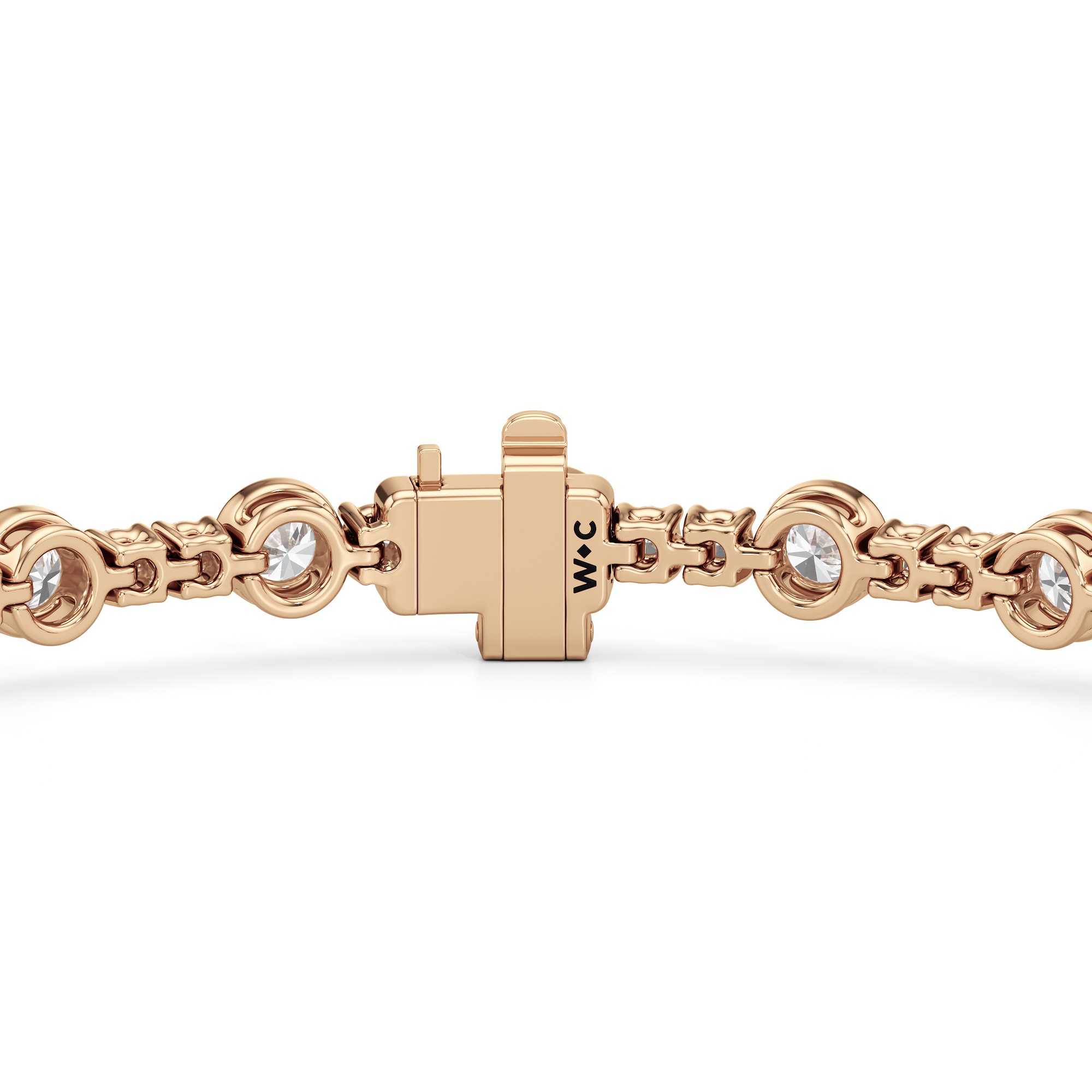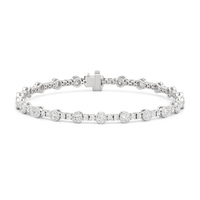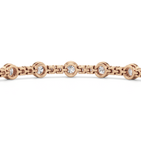 A testament to our vision of harmonizing luxury and simplicity. This tennis bracelet features a continuous line of round diamonds laid out in a pattern of one alternating bezel-set round diamond and a duo of claw prong-set round diamonds. The bracelet's understated design showcases the unparalleled fire and brilliance of the most popular diamond shape.