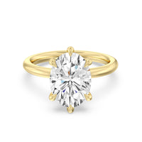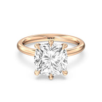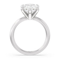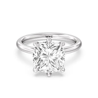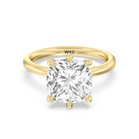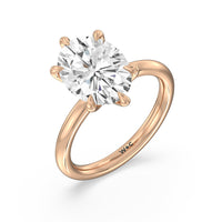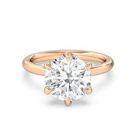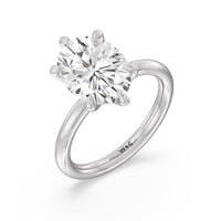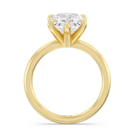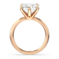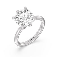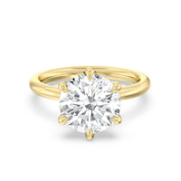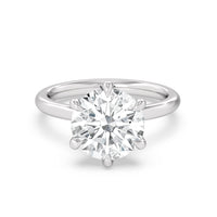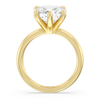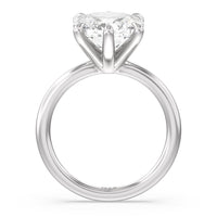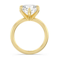 A classic, minimalist bride-to-be will love the unpretentious and unassuming elegance of this engagement ring. This solitaire features a polished band topped with a striking 5-carat diamond center stone held securely by six prongs. The clean lines and no-frills design of this ring allow the central gem to showcase its true beauty and shine in all its glory.