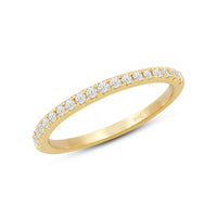 A ring that looks bold and fresh yet feels classic and timeless. This diamond studded ring features brilliant gems set on split prongs. Best for daily wear, this ring looks great solo or stacked with dainty plain or gem-set rings.